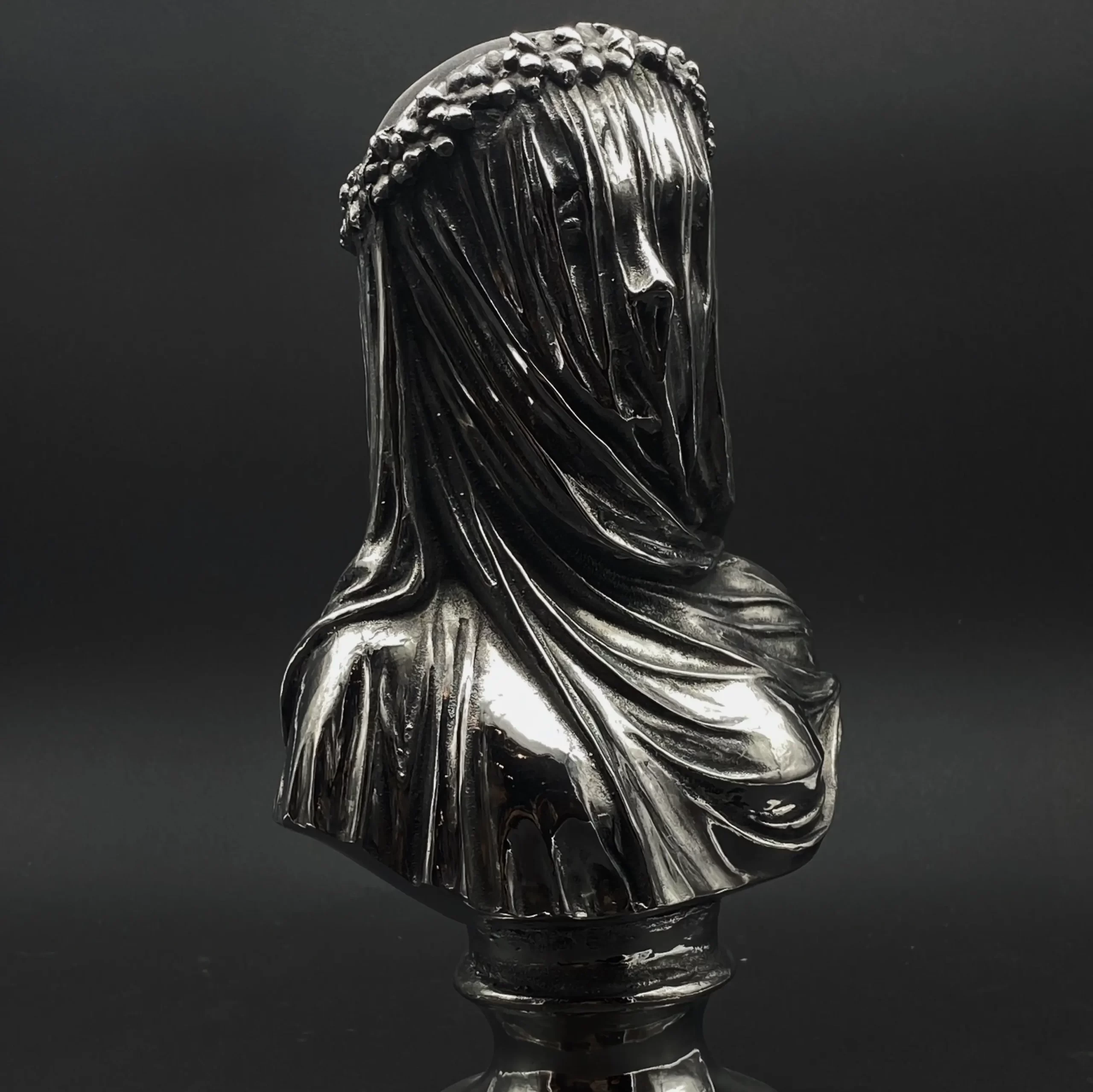 Un aura de misterio y elegancia envuelve esta figura femenina velada, invitando a la contemplación y la imaginación.