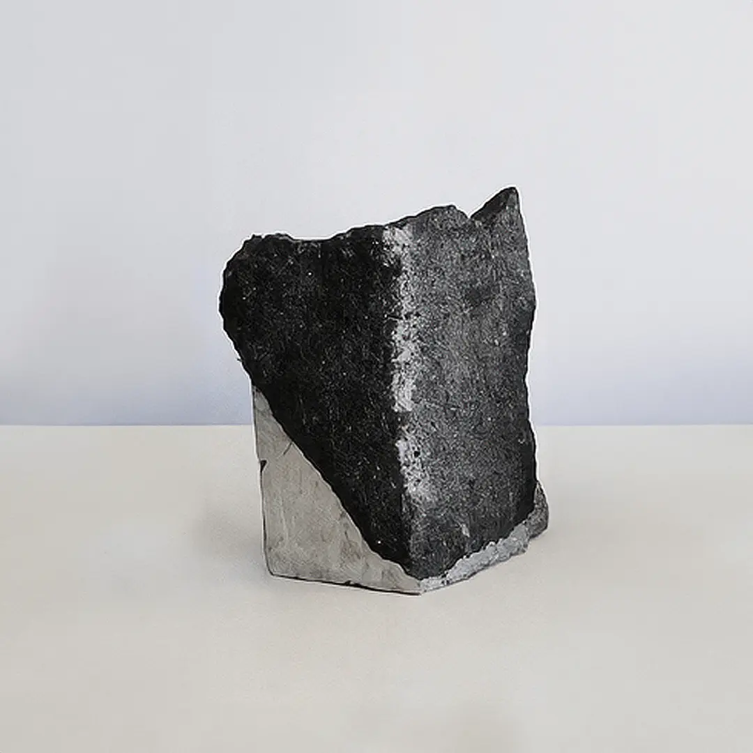 Esta serie es una exploración artística que entiende el cambio de la materia y las configuraciones químicas mediante la aplicación del calor. Este divertido y dinámico juego crea “piedras líquidas” de color metal, utilizando aluminio reciclado adherido a la historia de millones de años de una piedra volcánica. Ambas, la piedra y el metal, han transitado por el mismo proceso de transformación, de líquido a sólido, lo que da lugar a estos bancos con una textura dual y un contraste fascinante.